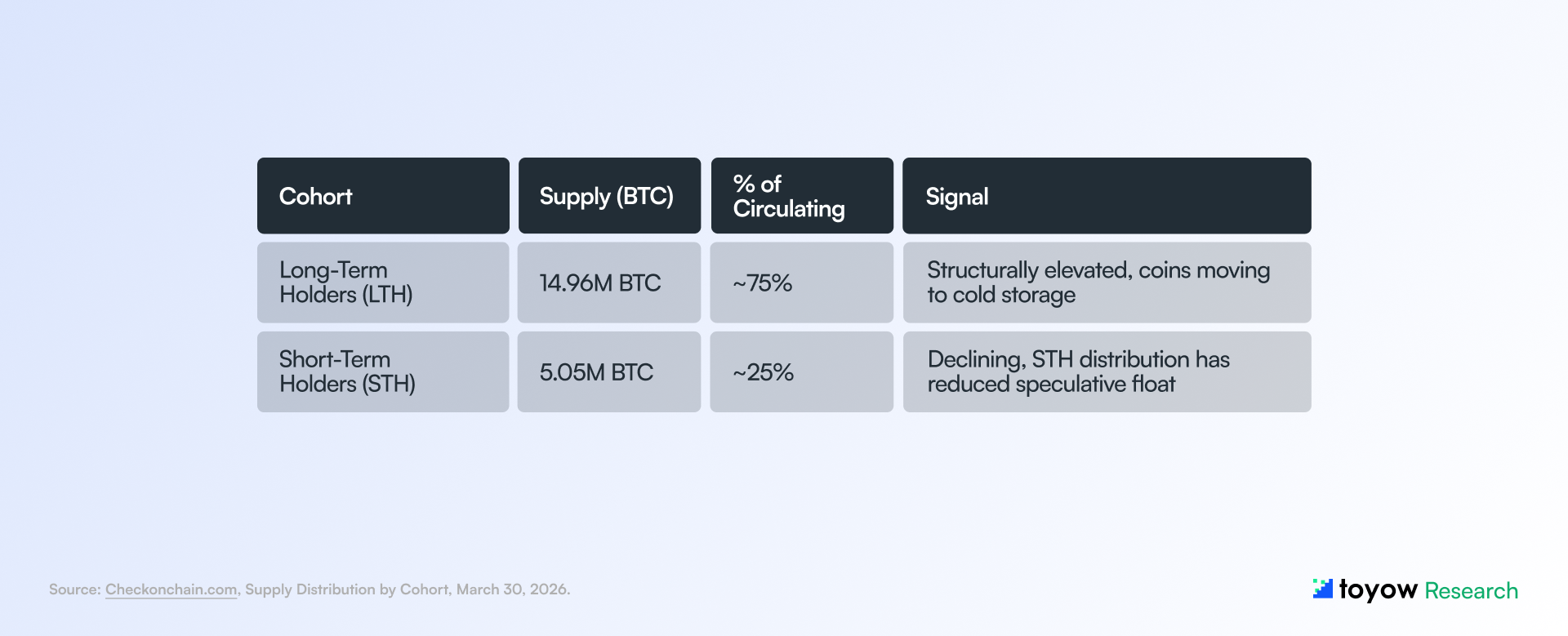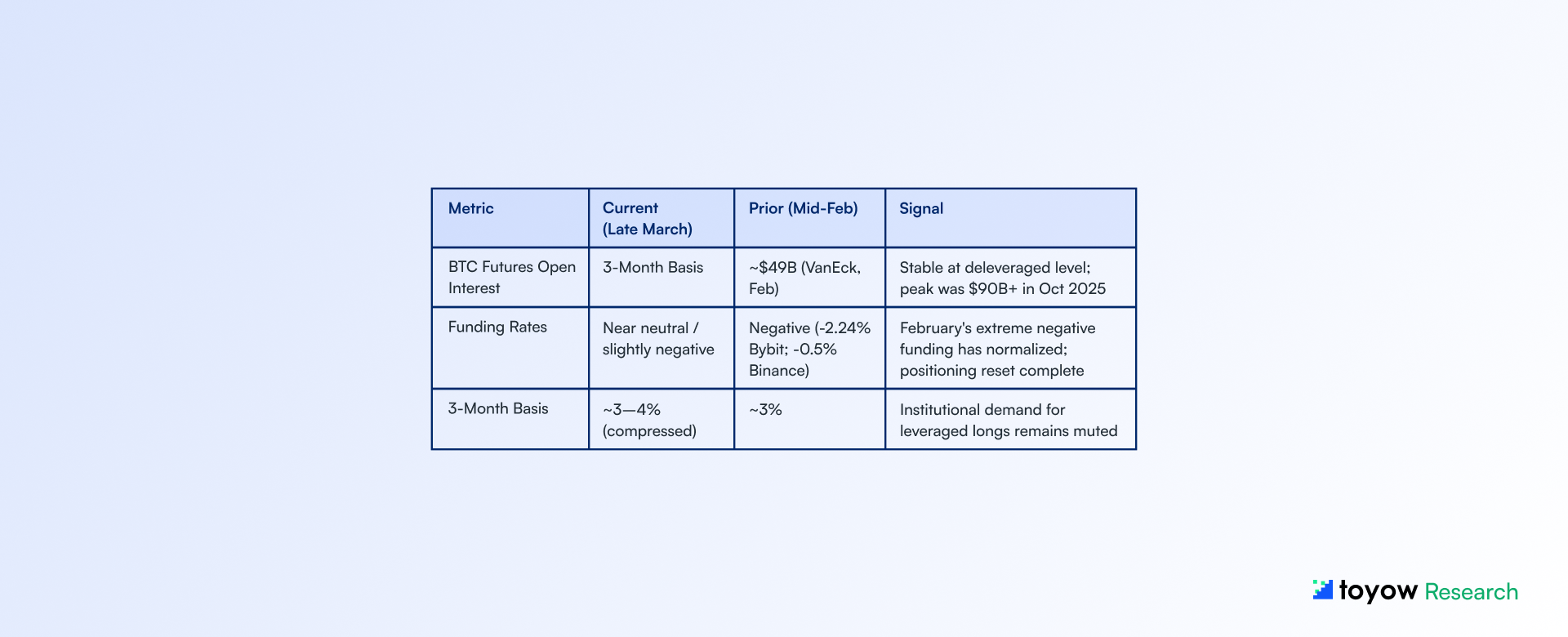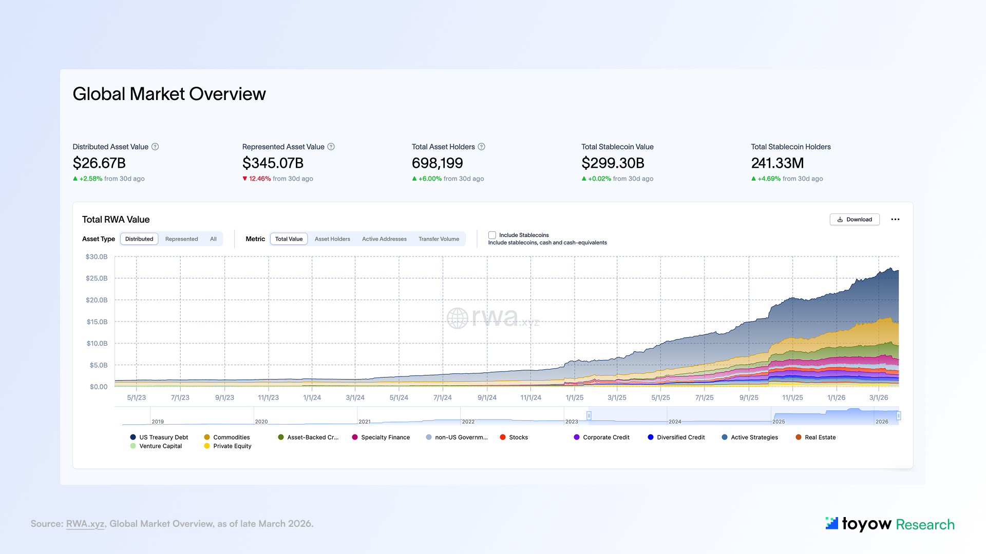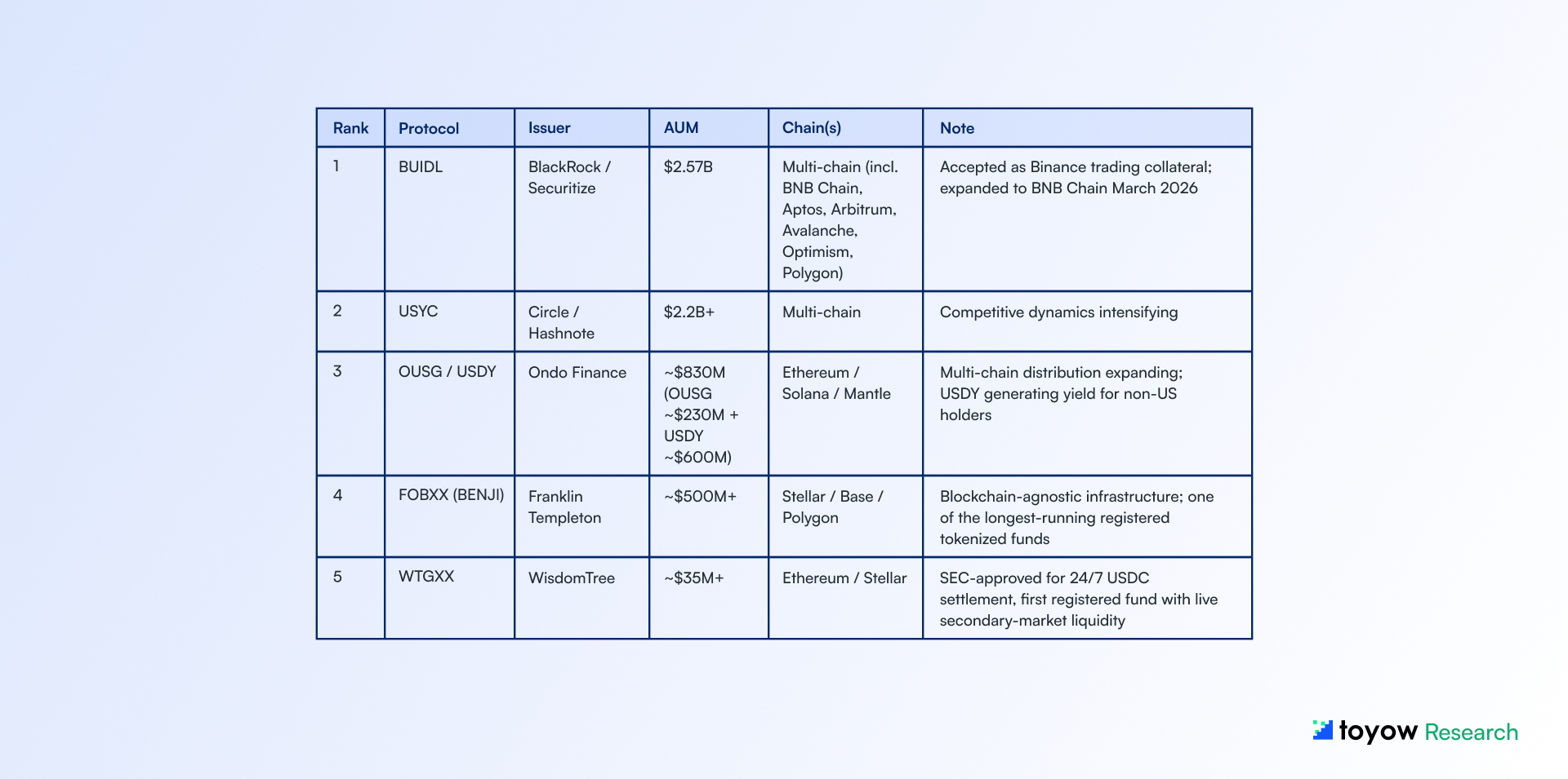 This report synthesizes publicly available information from onchain analytics platforms, regulatory publications, central bank communications, and market data sources believed to be reliable as of March 29, 2026. Toyow does not guarantee accuracy, completeness, or timeliness of the information contained herein.