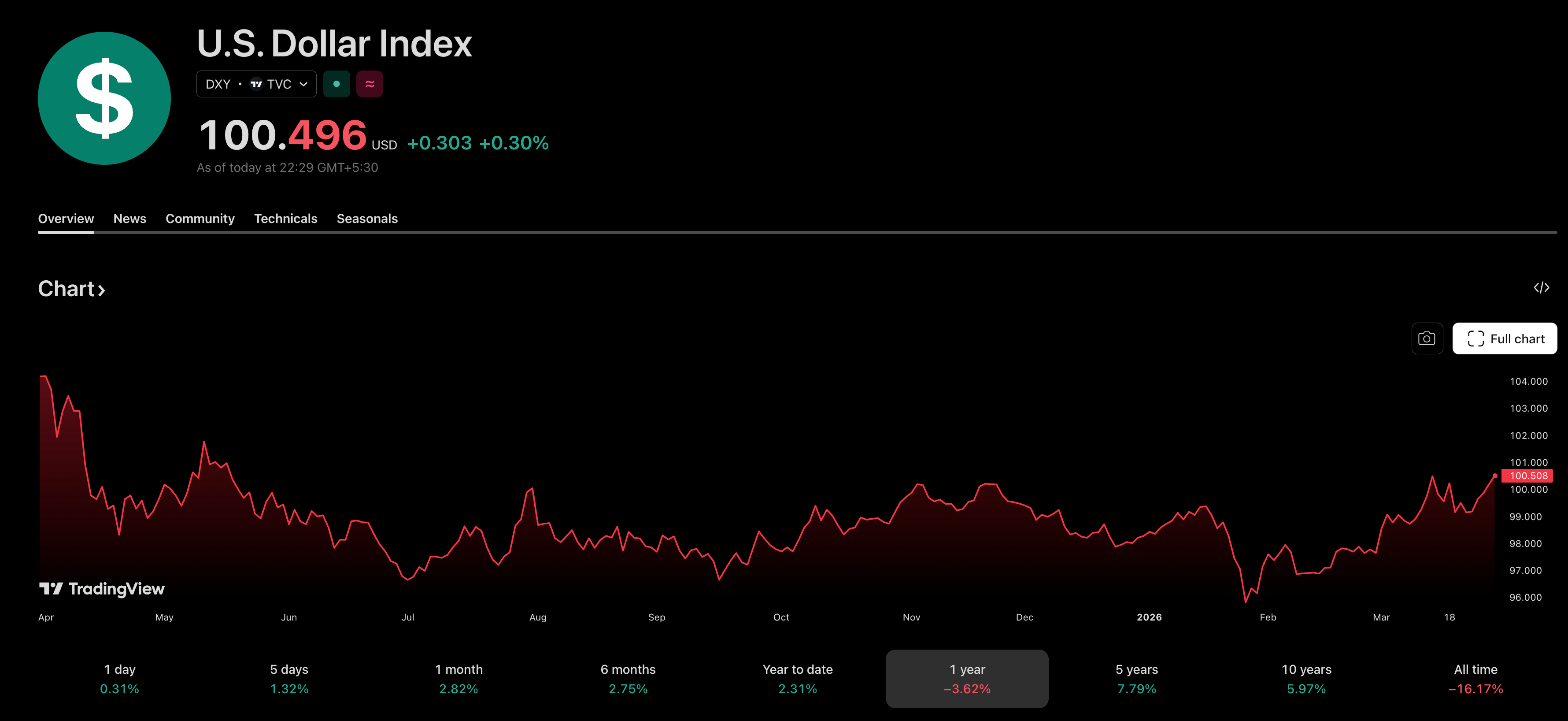- The Fed's hold and hawkish SEP provided modest dollar support, but the broader DXY downtrend remains intact; the index sits near ~100, down approximately 8% from its January peak above 109
