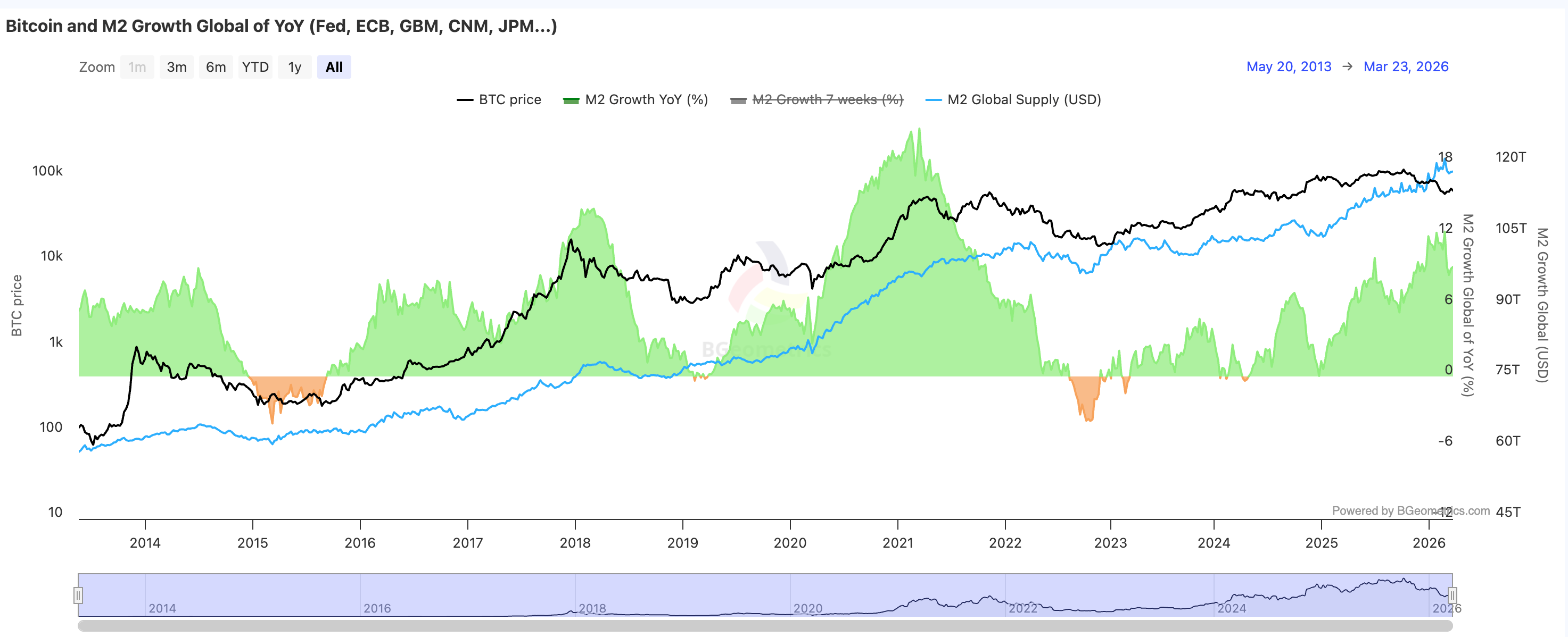 The M2-BTC correlation thesis continues to face a nuanced test. Dollar weakness historically benefits risk assets, but the current environment, where dollar weakness coexists with rising yields and stagflation fears, creates a more complex dynamic. BTC's mid-March recovery and subsequent selloff suggest it remains primarily a macro risk asset rather than a pure dollar hedge.