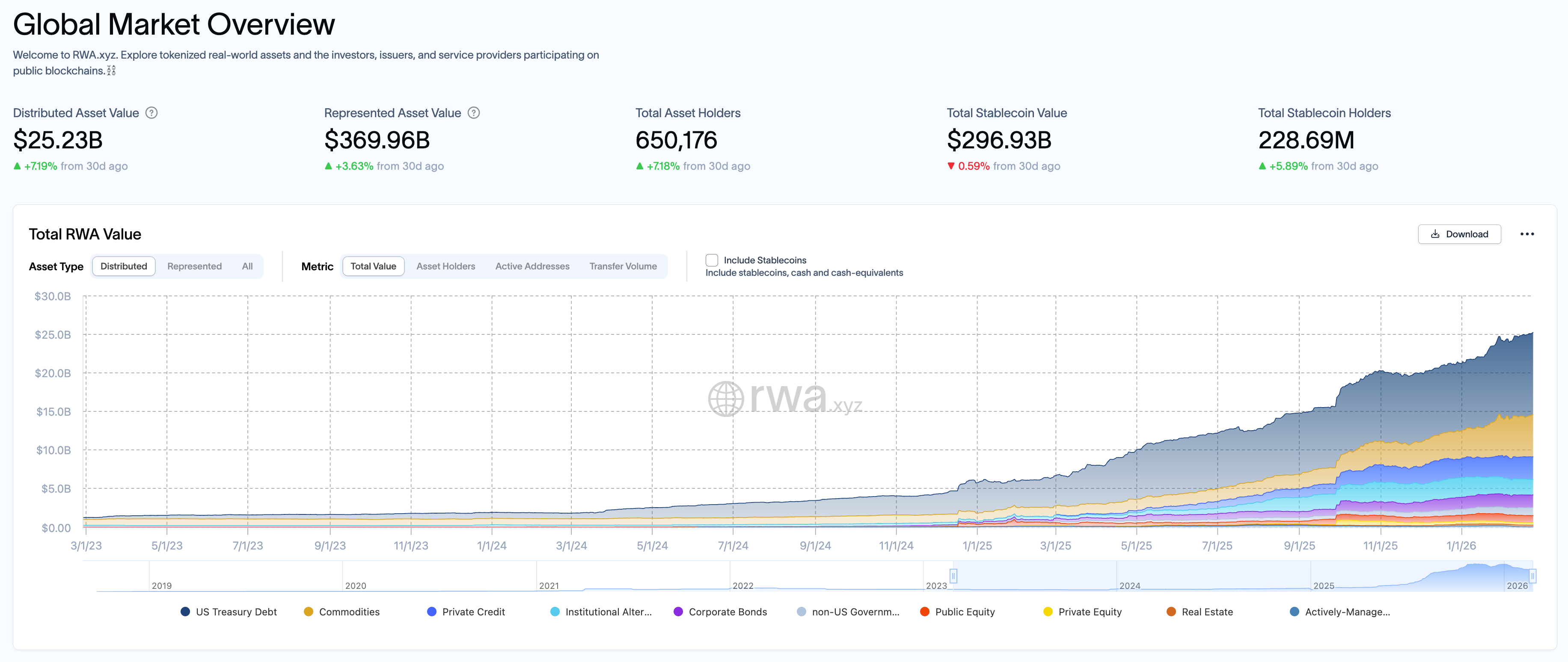 - Distributed asset value reflects RWAs actively deployed onchain.